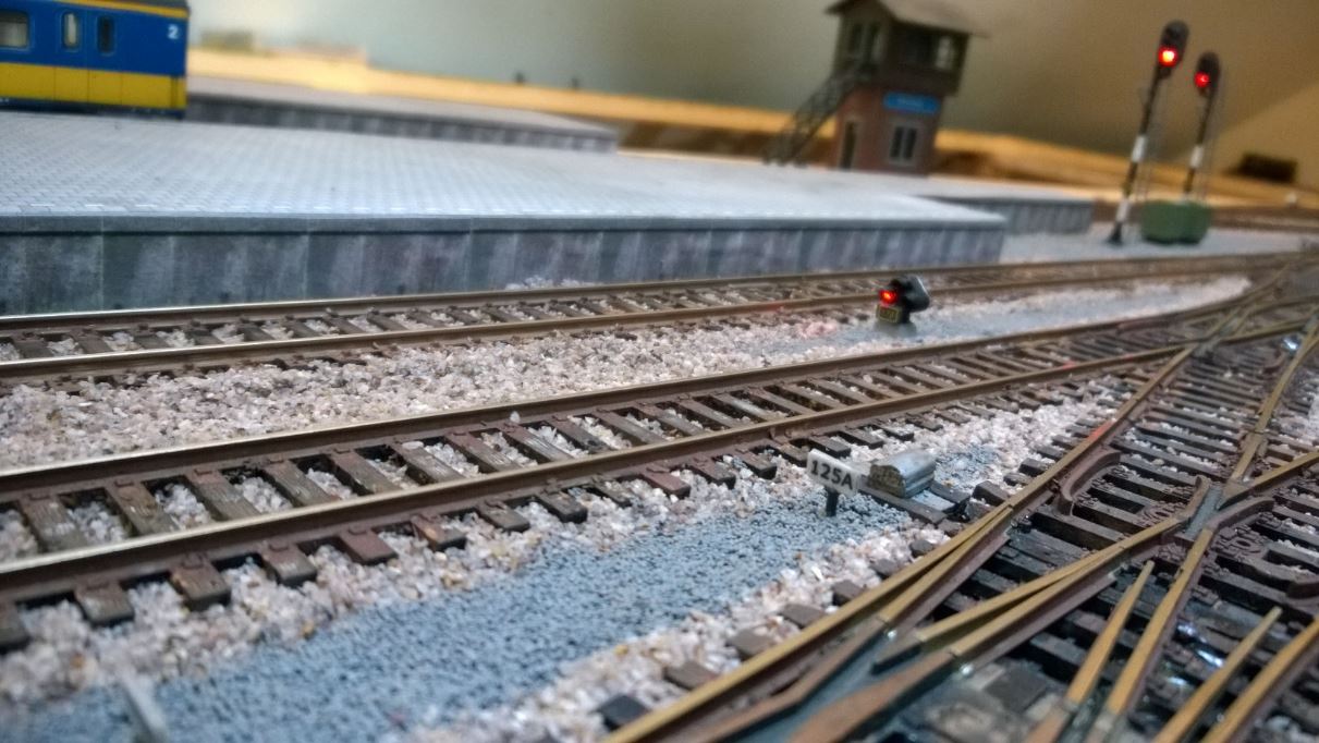 In de zachtboard ondergrond zit op de juiste plaats een gat voor de steller. Wissels zijn na schilderen en ballasten voorzien van (zelfbouw) nummer plaatjes en wisselmotoren. Samen met de ShapeWays NS seinen geeft dat een oer Hollands beeld.
