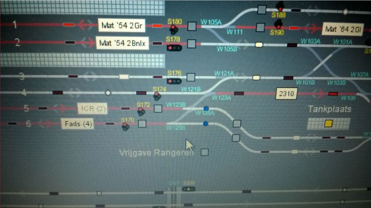 Gekoppelde (of overloop) wissels zijn te herkenenen aan de gelijke nummers en de A of B toevoeging en liggen fysiek met de "stompe kanten" aan elkaar. De wissels worden conform de werkelijkheid als één wissel bediend en moeten na het omlopen beide voor de beveiliging "in controle" liggen. Dit is de z.g. flankbeveiliging, waarbij materieel niet onbedoeld op een nevenspoor terecht kan komen. Wat betreft de nummering heb ik ook het NS /ProRail systeem aangehouden. Wissels hebben oneven nummers, seinen op emplacementen even nummers. De "P-seinen" beginnen met een traject nummer (honderd tal, b.v. Ut -> Ah = 900) en hebben even en oneven nummers, afhankelijk van de rijrichting.