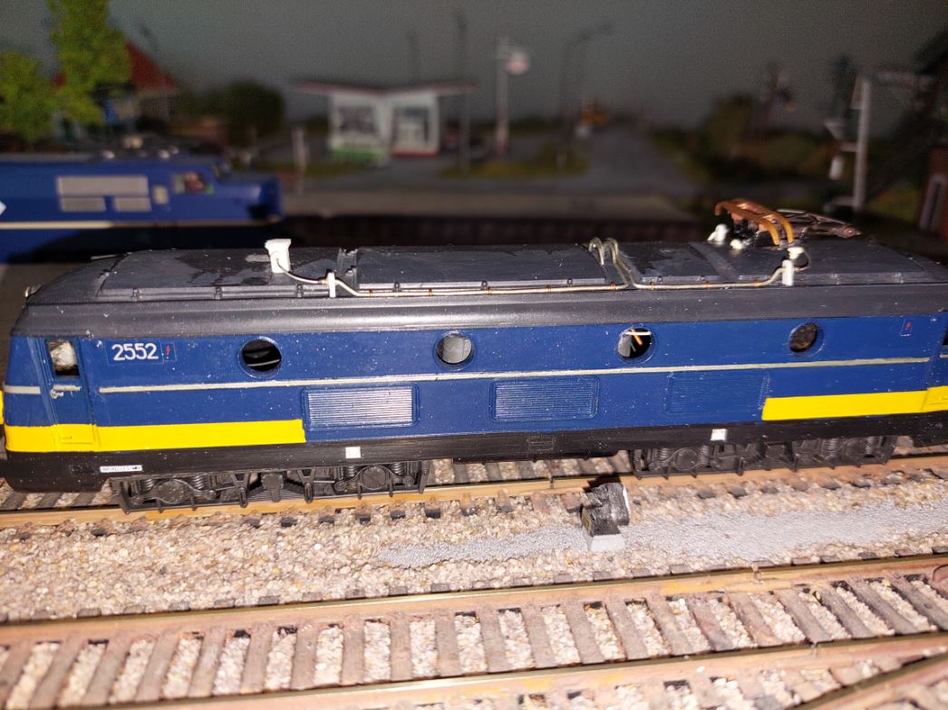 ESU decoder en staat 5mm "lager op de poten" door de bovenbalk van draaistellen af te snijden, het motor blok iets af te vlakken en een constructie gemaakt om ook de kap 5mm lager vast te zetten. Het dak is aangepakt met vrijstaande leidingen en één nieuwe panto. Cabines en machinekamer inrichting is de volgende stap. Het spul is aan de kant gelegd omdat er nog veel meer modellen wachten die eerst nog afgemaakt kunnen worden. En de jacht naar een Roco Plan-D restauratie rijtuig is geopend om de 30 jaar geleden, zelf geknutselde stuurstand op basis van een oud Fleischmann rijtuig, door iets fatsoenlijks te gaan vervangen. Wordt vervolgd in 2024?