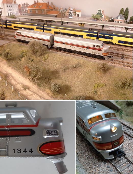 "Jij doet toch wat met treinen? Kijk maar of je er wat mee kan en hou hem maar, want hij rijdt niet goed meer". Ben helemaal "losgegaan" met opknappen. ModelTorque motor erin en gedigitaliseerd met een ESU LocSound V5 decoder, geladen met EMD-F7 geluid. Zeer uitgebreide (schakelbare) verlichting en ingerichte machine kamers en cabines. Lees hier de complete ombouw en hier de handleiding voor een 1 op 1 EMD F7...
